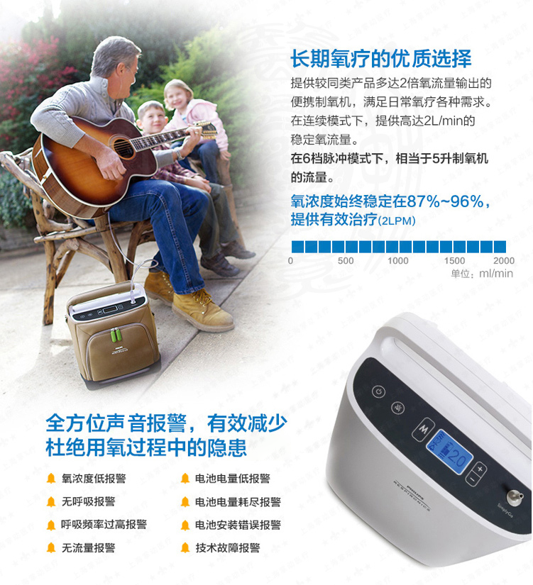 SimplyGo是一款僅重4.5kg,能同時提供持續(xù)流量和脈沖模式的便攜式制氧機(jī)。高性能壓縮機(jī)使用時間更長