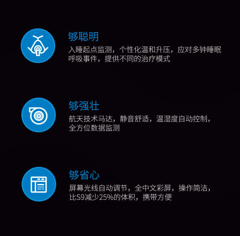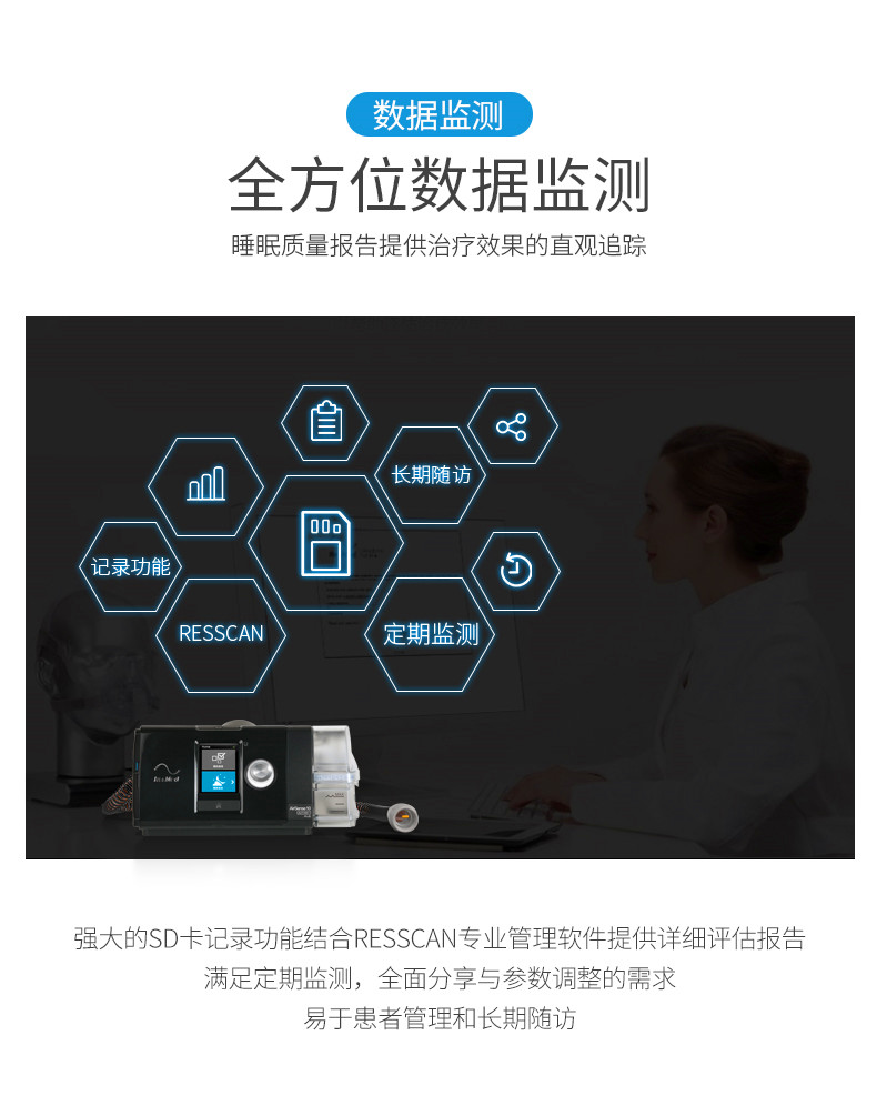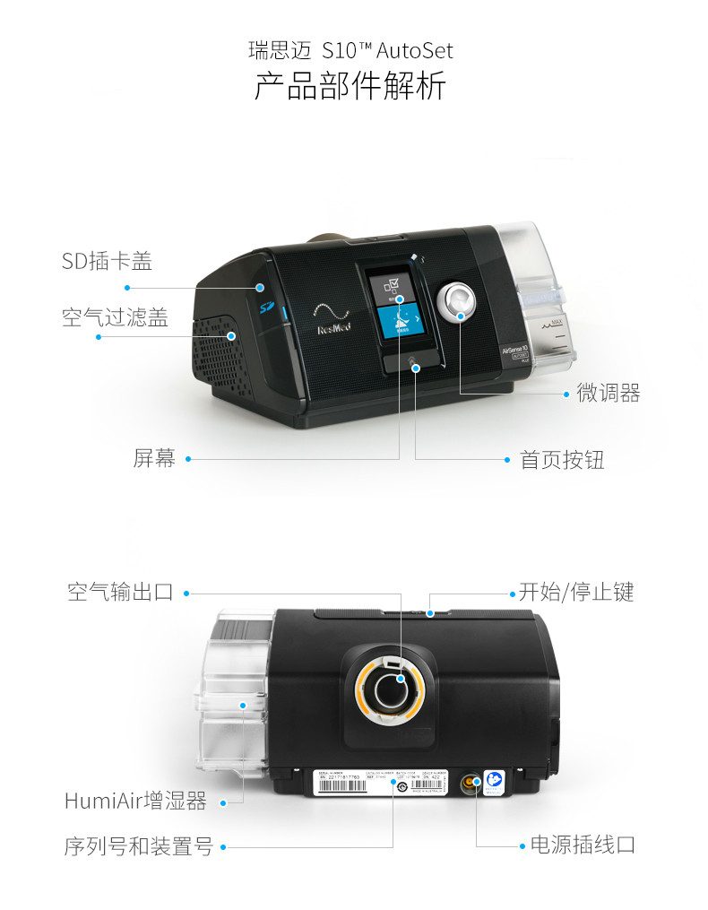AirSense 10 AutoSet是一款全自動(dòng)單水平睡眠呼吸治療設(shè)備。該設(shè)備自動(dòng)調(diào)節(jié)壓力水平以適應(yīng)您整夜變化的需求。當(dāng)與ResMed新型HumidAir 濕化器和ClimateLineAir?加溫管路一起使用時(shí),AirSense 10 AutoSet還可設(shè)定為在最舒適溫度與濕度水平下提供治療。是目前打呼嚕鼾癥(OSAH)患者,睡眠呼吸暫停類疾病的最佳選擇,更能有限針對(duì)中樞性呼吸暫停提供探測(cè)功能。完美解決您的睡眠問題。