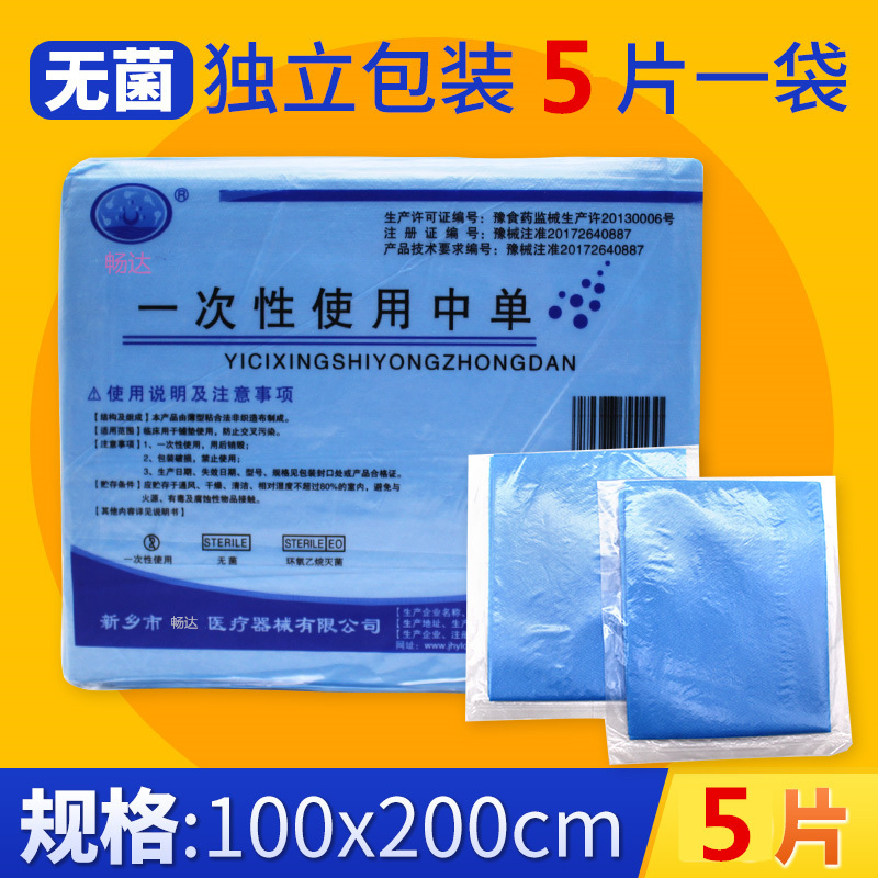 一次性無菌墊單100*200防水檢查手術中單1*2米醫用護理墊獨立包裝5片裝,青島醫療器械銷售一次性手術床單,中單100*200,醫用床單墊。青島海逸醫療器械,上海路60號.0532-58726806