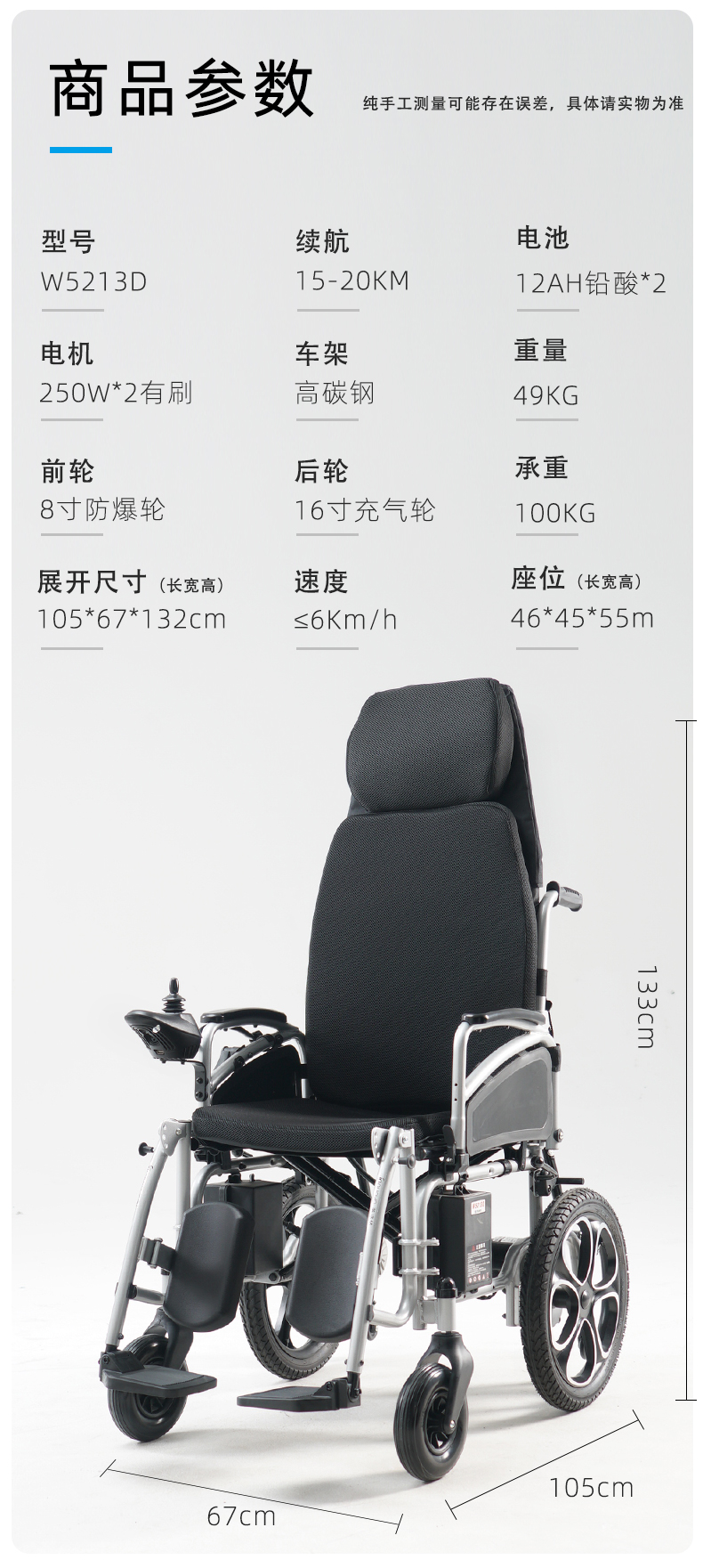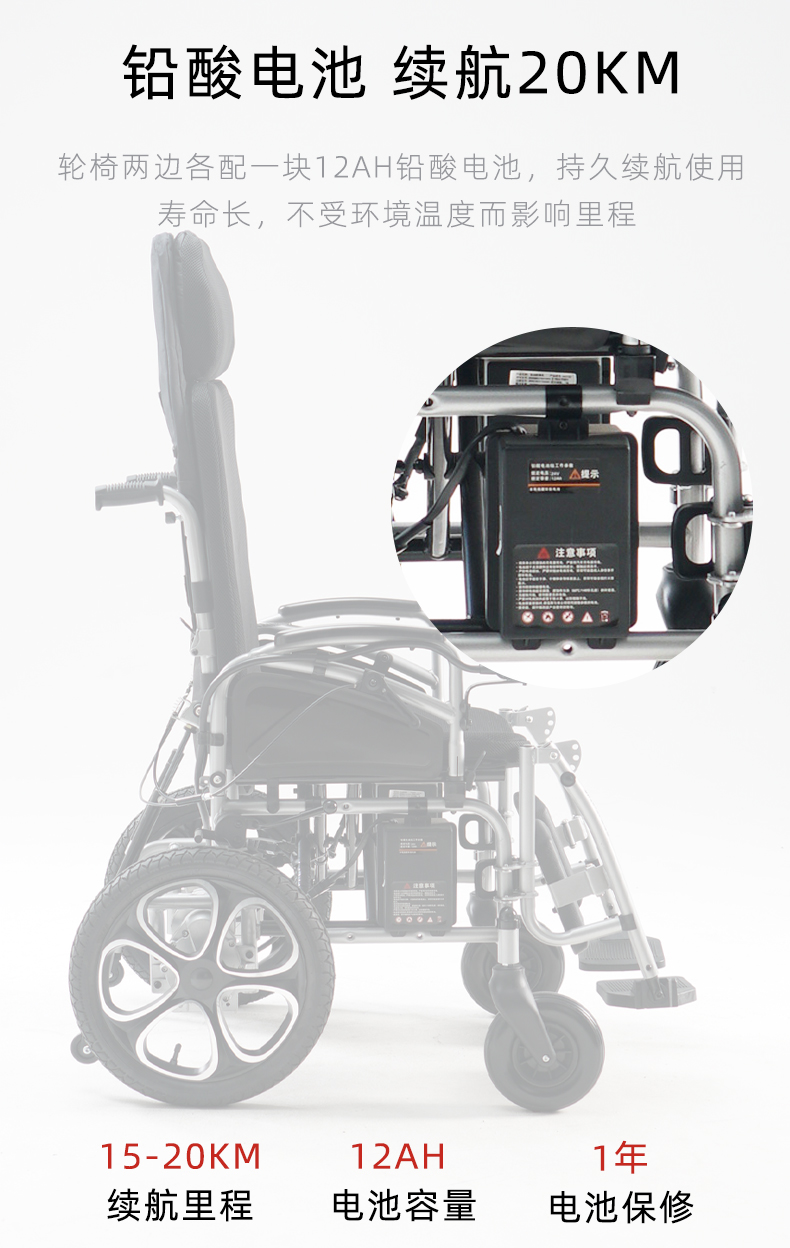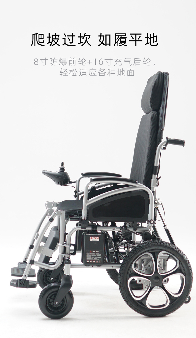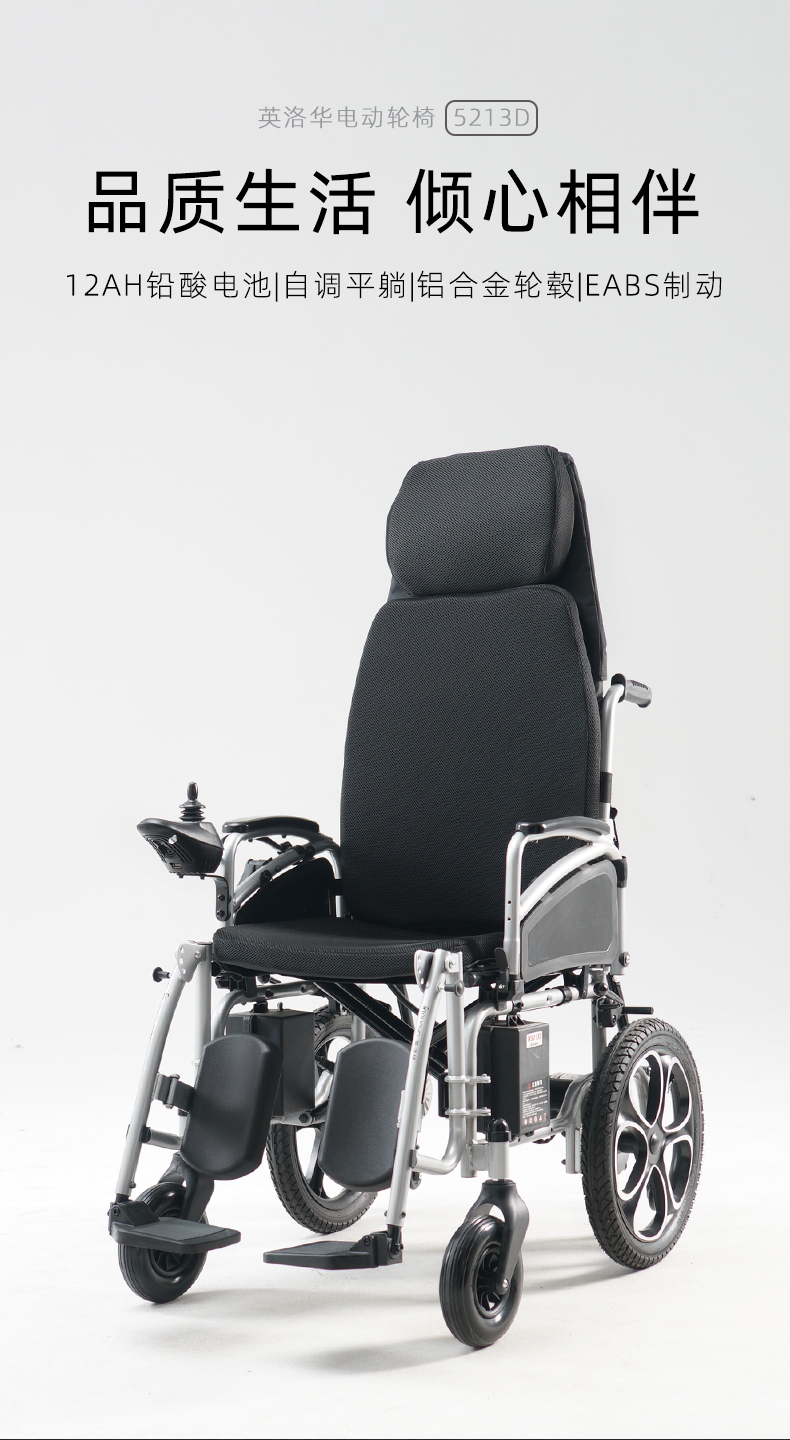 可以躺平的電動輪椅抬腿半躺英洛華W5312D